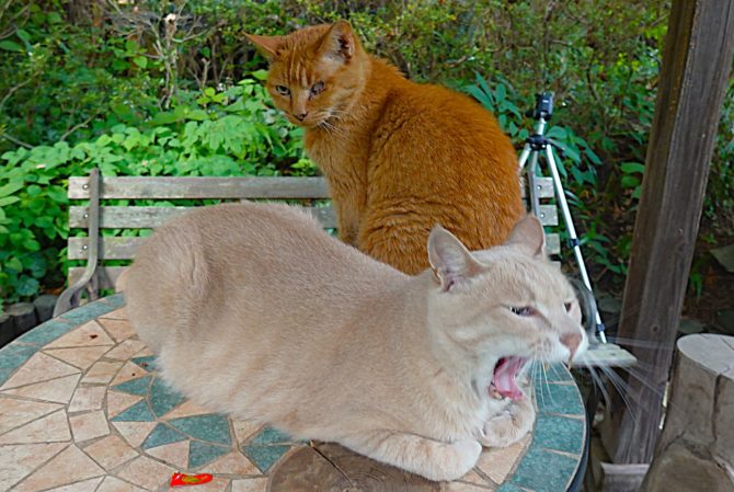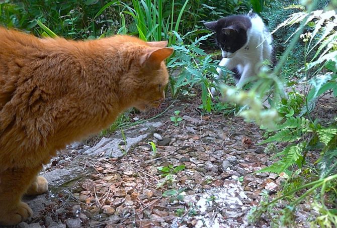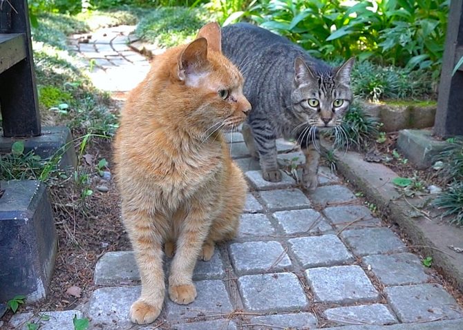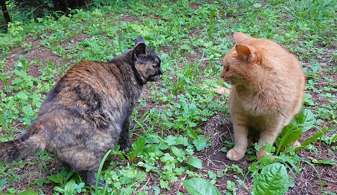 メス猫に好かれるゆづですが、りんのような勝気な性格はゆづは苦手と見えて、りんがそばによるとゆづは警戒します。