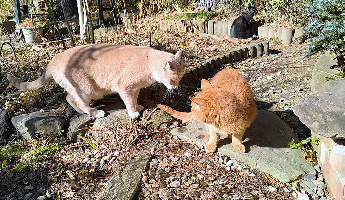 上の写真は落ち葉掃除の終わった裏庭のゆづとつづらです。
