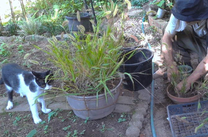 空き地でエノコログサを採取して鉢植えにしました。